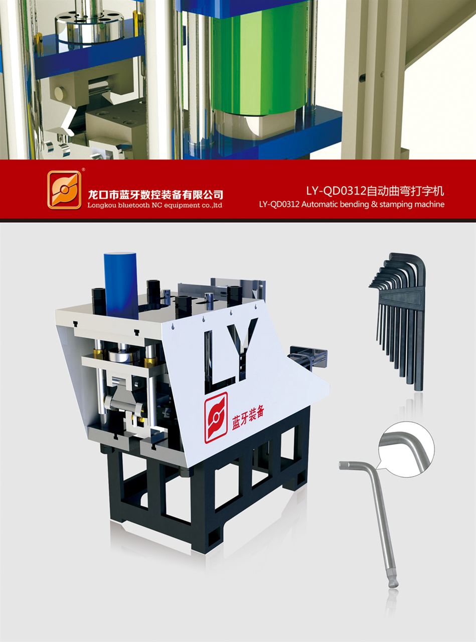 ★內(nèi)六角打字折彎機床改變了傳統(tǒng)的加工工序,針對于五金工具行業(yè),內(nèi)六角,花形六角板手,及套筒附件等需要既曲彎成型又要打字的產(chǎn)品,進行了多工序的整合,一次成料,打字曲彎成型同時完成